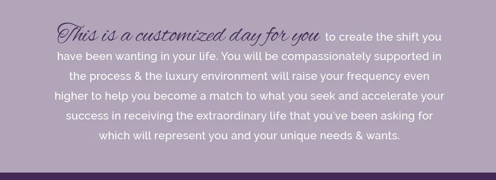 Your ON LOCATION, VIP DAY will be customized based on what you view as an extraordinary life for you.